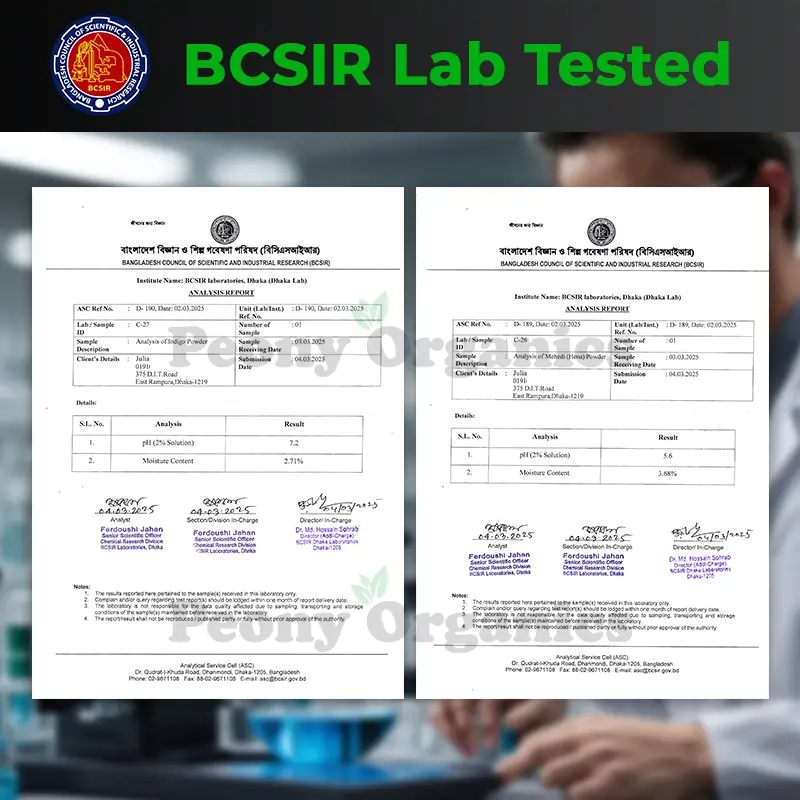 Peony Organics Premium Herbs Indigo-Henna Combo āĻĒāĻŖā§āϝāĻĻā§āĻŦāϝāĻŧ āĻŦāĻžāĻāϞāĻžāĻĻā§āĻļ āĻŦāĻŋāĻā§āĻāĻžāύ āĻ āĻļāĻŋāϞā§āĻĒ āĻāĻŦā§āώāĻŖāĻž āĻĒāϰāĻŋāώāĻĻ (BCSIR) āĻĻā§āĻŦāĻžāϰāĻž āĻĒāϰā§āĻā§āώāĻŋāϤ āĻ āĻ āύā§āĻŽā§āĻĻāĻŋāϤ, āϝāĻž āĻāϰ āĻŦāĻŋāĻļā§āĻĻā§āϧāϤāĻž, āύāĻŋāϰāĻžāĻĒāϤā§āϤāĻž āĻ āĻāĻžāϰā§āϝāĻāĻžāϰāĻŋāϤāĻž āύāĻŋāĻļā§āĻāĻŋāϤ āĻāϰā§āĨ¤ āĻāĻĒāύāĻŋ āύāĻŋāĻļā§āĻāĻŋāύā§āϤ⧠āĻŦā§āϝāĻŦāĻšāĻžāϰ āĻāϰāϤ⧠āĻĒāĻžāϰā§āύ, āĻāĻžāϰāĻŖ āĻĒā§āϰāϤāĻŋāĻāĻŋ āĻāĻĒāĻžāĻĻāĻžāύ āĻŦā§āĻā§āĻāĻžāύāĻŋāĻāĻāĻžāĻŦā§ āĻĒāϰā§āĻā§āώāĻž āĻāϰāĻž āĻšāϝāĻŧā§āĻā§ āϝāĻžāϤ⧠āĻāĻāĻŋ āĻā§āϞā§āϰ āϝāϤā§āύ⧠āϏāĻŽā§āĻĒā§āϰā§āĻŖ āĻĒā§āϰāĻžāĻā§āϤāĻŋāĻ āĻ āĻāĻĒāĻāĻžāϰ⧠āĻšāϝāĻŧāĨ¤